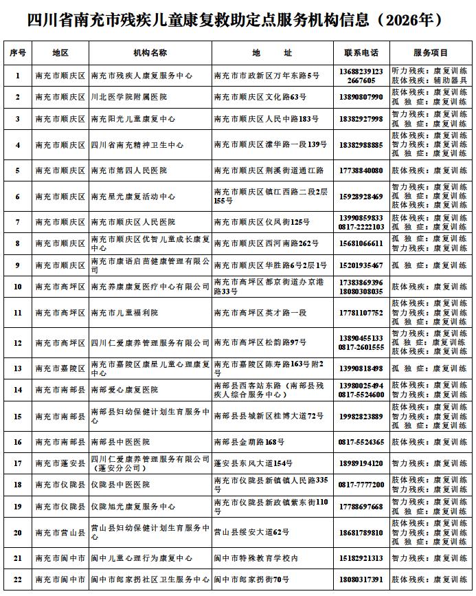 南充市殘疾兒童定點(diǎn)康復(fù)服務(wù)機(jī)構(gòu)