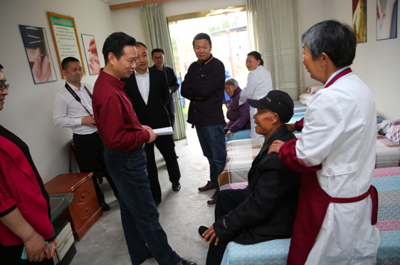 李理事長在相如鎮(zhèn)白玉片區(qū)泰和玉都康復站看望正在康復訓練的殘疾老人