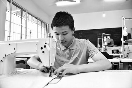A 愛縫紉愛踢球 老師眼里的完美少年 陳誠正在上縫紉課,布料在縫紉機上飛快地移動著。陳誠用手語告訴記者,他正在制作一件襯衣的袖子。 “陳誠這孩子特別開朗,也非常聰明!笨p紉課老師陳玲一邊說一邊翻出陳誠制作的功夫服,“這是他們前段時間跳舞的演出服,都是陳誠獨立完成的,一天能做3件呢!” 16歲的陳誠目前在聾生班6年級就讀。班主任惠永莉告訴記者,從她3年前開始接手班主任后,就對陳誠的印象特別好,“文化課和技能課都非常優(yōu)秀,綜合排名始終保持在班級第一名。” 在惠永莉眼里,陳誠還是她的好幫手,“他的漢字寫得很好,班里每期黑板報都是他獨立完成,現(xiàn)在其他班的老師也都找他幫忙呢!” 對于心中的愿望,陳誠用手語告訴老師,他想踢球,當球星。班主任惠永莉笑著介紹,陳誠不僅學習優(yōu)異,愛好也非常廣泛。去年不僅加入了我市首支聾啞少年足球隊,今年4月份,陳誠領舞數(shù)位聾啞孩子在西河體育公園表演的舞蹈《青花瓷》,贏得了現(xiàn)場市民的熱烈掌聲。
