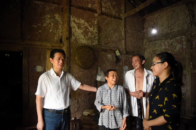 市殘聯(lián)黨組書記、理事長李會全(左一)到蓬安縣龍蠶鎮(zhèn)一碗水村一組看望他幫扶的貧困戶陳三才夫婦