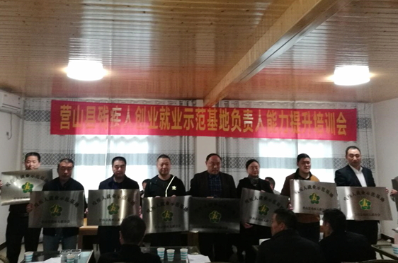 培訓會上,營山縣殘聯(lián)理事長王蘭輝首先通報了營山縣殘疾人創(chuàng)業(yè)就業(yè)示范基地審核認定結果。并與參會領導對全縣7個殘疾人創(chuàng)業(yè)示范基地、10個殘疾人就業(yè)示范基地、7個殘疾人創(chuàng)業(yè)就業(yè)基地分別進行了授牌。