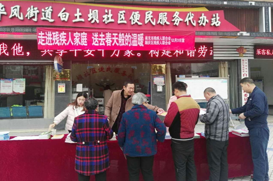 今年12月3日是第26個“國際殘疾人日”。為大力弘揚(yáng)人道主義精神,形成良好的扶殘助殘氛圍,12月1日,市殘聯(lián)與順慶區(qū)殘聯(lián)在白土壩社區(qū)開展主題為“愛心助殘進(jìn)社區(qū)”的宣傳活動。