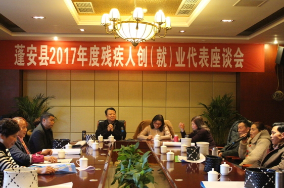 近日,蓬安縣召開殘疾人創(chuàng)(就)業(yè)座談會。母紅梅等17名殘疾人創(chuàng)(就)業(yè)代表、各專門協(xié)會主席和助殘公益機構(gòu)負責人參加座談會。會議由蓬安縣殘聯(lián)黨組成員、副理事長聶翠萍主持,蓬安縣殘聯(lián)黨組書記、理事長陳愛民出席座談會并作重要講話。