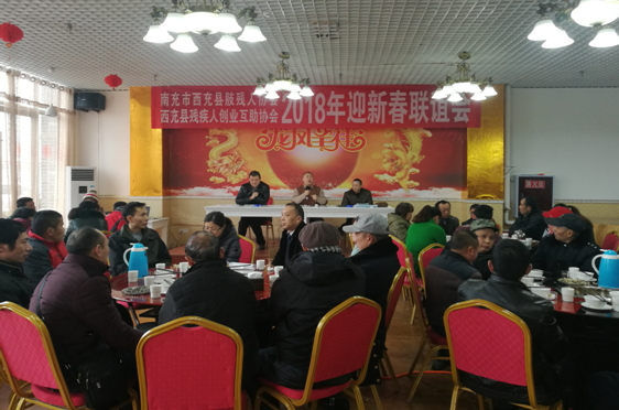 為了發(fā)揚(yáng)殘疾人自尊、自信、自強(qiáng)、自立的精神,增進(jìn)殘疾人之間的相互交流、團(tuán)結(jié)友愛之情。元月30日上午,由西充縣殘聯(lián)牽頭,西充縣肢殘人協(xié)會與西充縣殘疾人創(chuàng)業(yè)互助協(xié)會在縣城城北新區(qū)舉行了2018年迎新春聯(lián)誼會,參加本次活動有縣殘聯(lián)理事長王文春、縣殘肢人協(xié)會及殘疾人創(chuàng)業(yè)互助協(xié)會成員和優(yōu)秀肢殘人代表近百名。