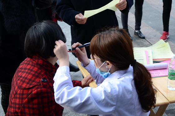廣場內(nèi)人頭攢動,前來義診義檢的人們?nèi)齼蓛山j(luò)繹不絕,市中醫(yī)院、市眼耳鼻喉?漆t(yī)院、市中山醫(yī)院等醫(yī)療單位紛紛打出橫幅,組織醫(yī)務(wù)人員一邊發(fā)放宣傳資料,一邊為市民開展義診義檢活動。“你這是神經(jīng)性耳聾耳鳴,建議你配戴助聽器……”,在市眼耳鼻喉?漆t(yī)院義診服務(wù)臺前醫(yī)生熱情地告訴一位張姓患者說。