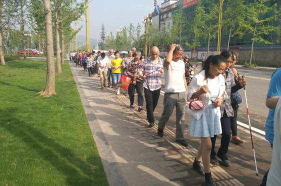 5月14日上午,風(fēng)和日麗,陽光明媚。西充縣殘聯(lián)在縣城城北新區(qū)體育廣場開展了盲人定向行走訓(xùn)練活動,全縣近百位視力殘疾人參與其中。