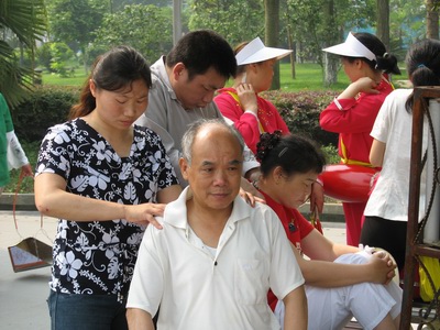 為配合宣傳活動的開展,市殘聯(lián)還組織了30多名盲人學(xué)員上街為群眾義務(wù)按摩,得到了中老年人的歡迎。