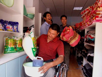 5月21日,由閬中市殘聯(lián)籌建的首家“愛心超市”在天馬街開張。該超市存放著由機關(guān)、企事業(yè)單位和社會各界捐贈的棉被、衣服、洗衣粉等生活用品近3000件,以及殘聯(lián)提供的輪椅、拐杖等殘疾人輔助器具168件。當閬中市的貧困殘疾人異常興奮地“走”進“愛心超市”挑選自己生活必需品時,都高興地說:“這是殘聯(lián)又為殘疾人辦的一件事實!