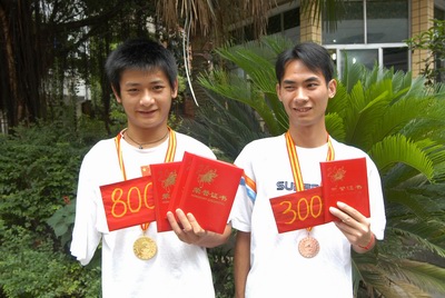 6月9日至17日,2006年全國(guó)殘疾人田徑錦標(biāo)賽在廣東肇慶舉行,四川省有11名運(yùn)動(dòng)員參加了此項(xiàng)比賽。我市殘疾人運(yùn)動(dòng)員郭泥、滕平分別參加了男子200米、400米和跳遠(yuǎn)項(xiàng)目的比賽,郭泥榮獲T45/T46級(jí)別男子200米項(xiàng)目第一名,這是我省參加此項(xiàng)比賽所獲得的唯一一枚金牌;腦癱運(yùn)動(dòng)員滕平獲得了T38級(jí)別男子200米項(xiàng)目銅牌。此外,郭泥還獲得本次全國(guó)殘疾人田徑錦標(biāo)賽體育道德風(fēng)尚獎(jiǎng)。為激勵(lì)他們奮勇?tīng)?zhēng)先、頑強(qiáng)拼搏、展示自我的精神,市殘聯(lián)給郭泥頒發(fā)獎(jiǎng)金800元,給滕平頒發(fā)獎(jiǎng)金300元。