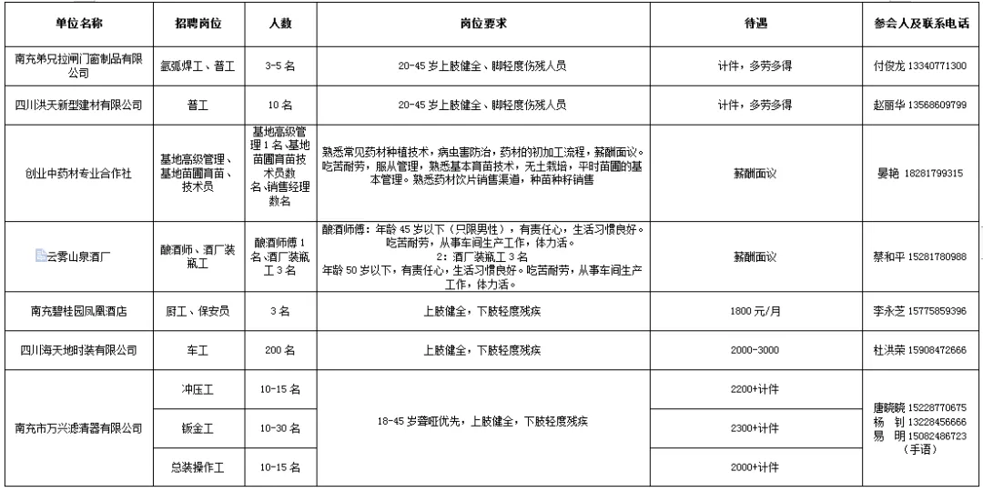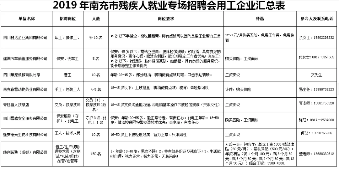 附件:2019年南充市殘疾人就業(yè)專場招聘會(huì)用工企業(yè)匯總表