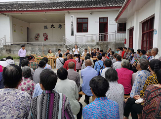 在土橋廟村幸福院的操場上,幫扶干部與農(nóng)戶促膝談心拉家常,今昔對比話巨變,憧憬未來謀發(fā)展。