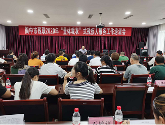 為進(jìn)一步與殘疾人在感情上心連心、工作上實(shí)打?qū),管理上點(diǎn)對點(diǎn),用心、用情、用力為殘疾人提供精準(zhǔn)服務(wù)、精細(xì)服務(wù)、精心服務(wù),助力全市廣大殘疾人脫貧奔小康,7月10日,閬中市殘聯(lián)在機(jī)關(guān)四樓會(huì)議室召開了2020年“量體裁衣”式殘疾人服務(wù)工作培訓(xùn)會(huì)議。各鄉(xiāng)鎮(zhèn)、街道殘聯(lián)理事長、殘疾人專干、村(社區(qū))殘疾人專委、市殘聯(lián)機(jī)關(guān)全體干部職工共計(jì)90余人參加了培訓(xùn)。會(huì)議由市殘聯(lián)黨組成員、副理事長王冰主持。