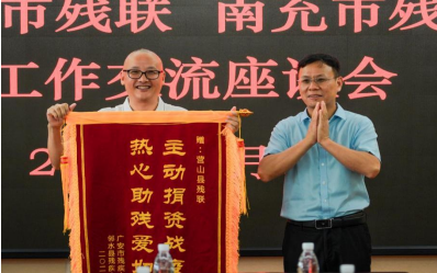 今年5月,營山縣殘聯(lián)及相關(guān)愛心企業(yè)為廣安殘聯(lián)系統(tǒng)捐贈了價值30萬元的抗疫物資,為表示感謝,蔣西南一行為營山縣殘聯(lián)、朱家丫口建材有限公司贈送了錦旗。