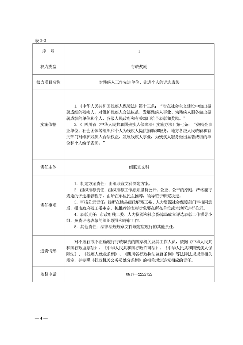 南充市殘疾人聯(lián)合會行政權(quán)力責(zé)任清單