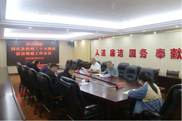 9月21日,營山縣殘聯(lián)召開理事會(擴大)會議,專題研究、安排部署國慶和黨的二十大期間信訪維穩(wěn)工作?h殘聯(lián)黨支部書記、理事長何德一主持會議。