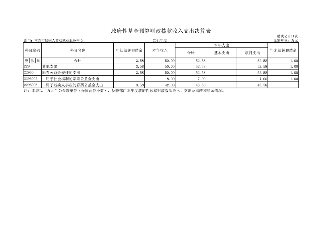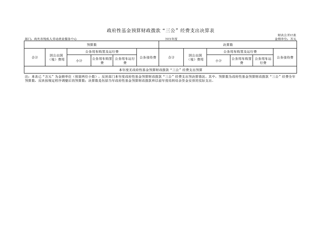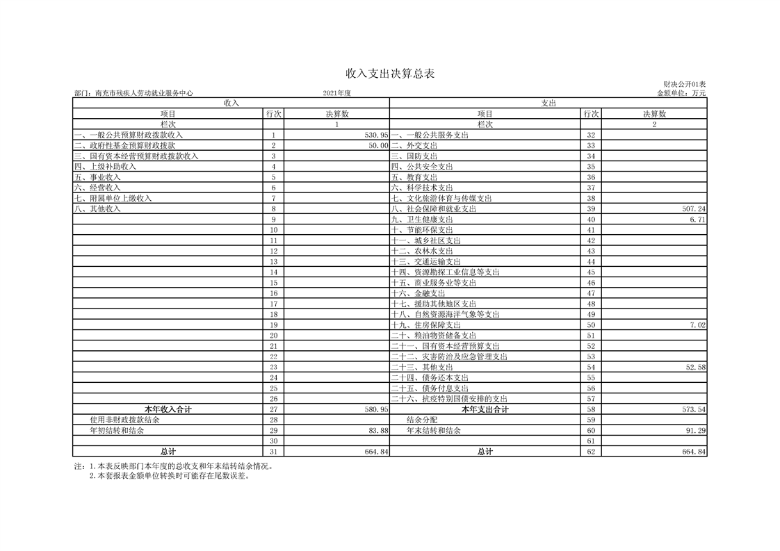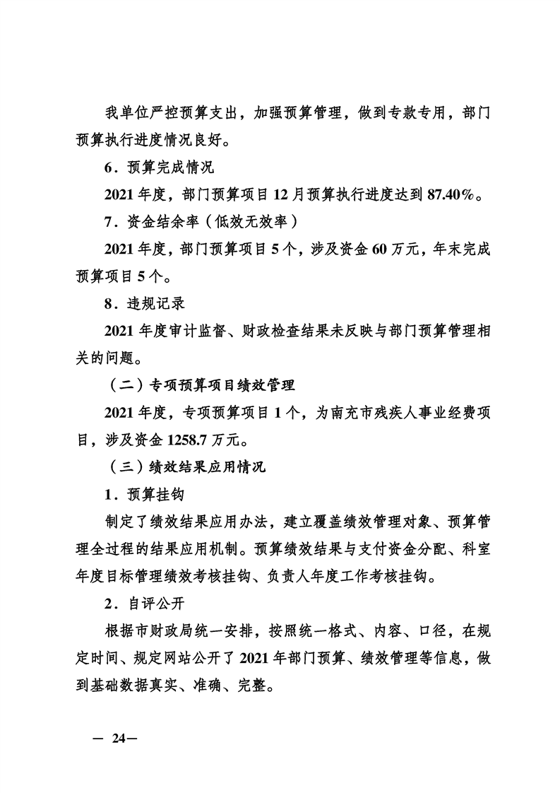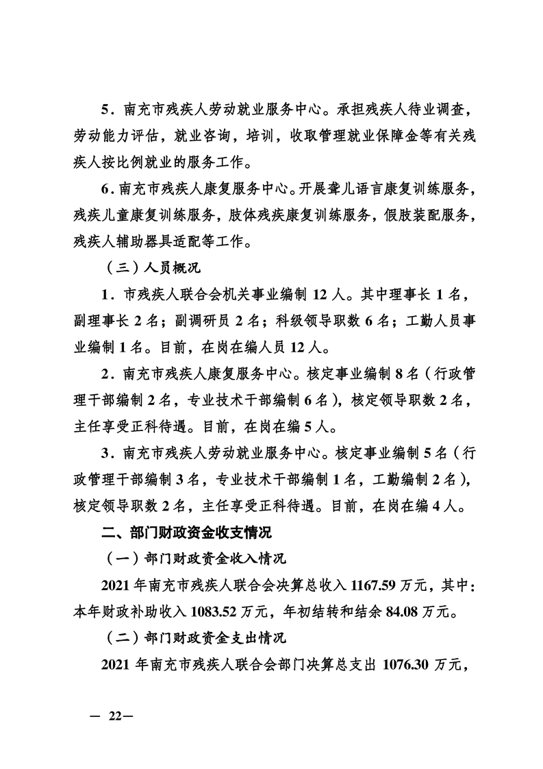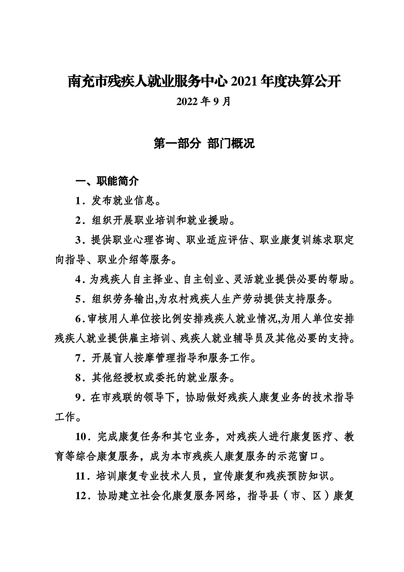 2021年度南充市殘疾人聯(lián)合會單位決算(中心)