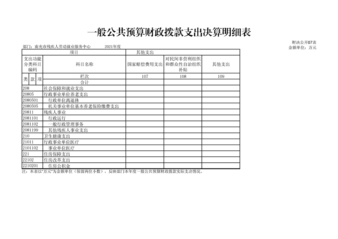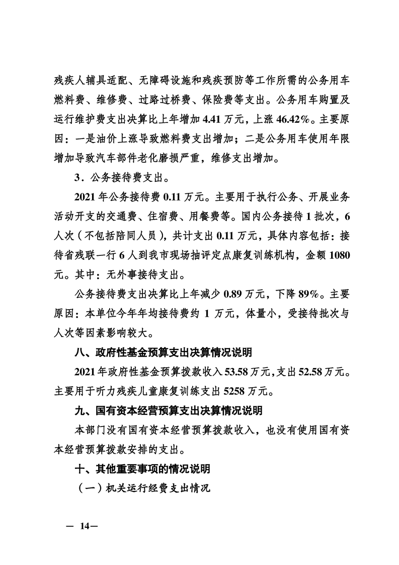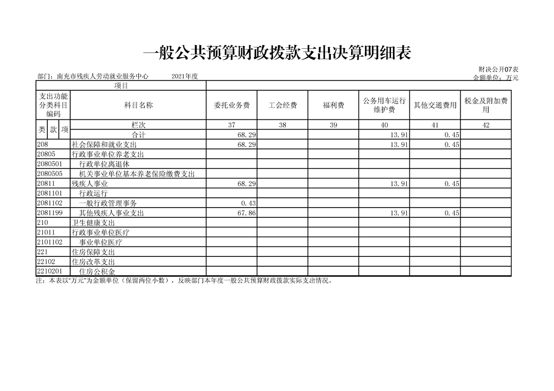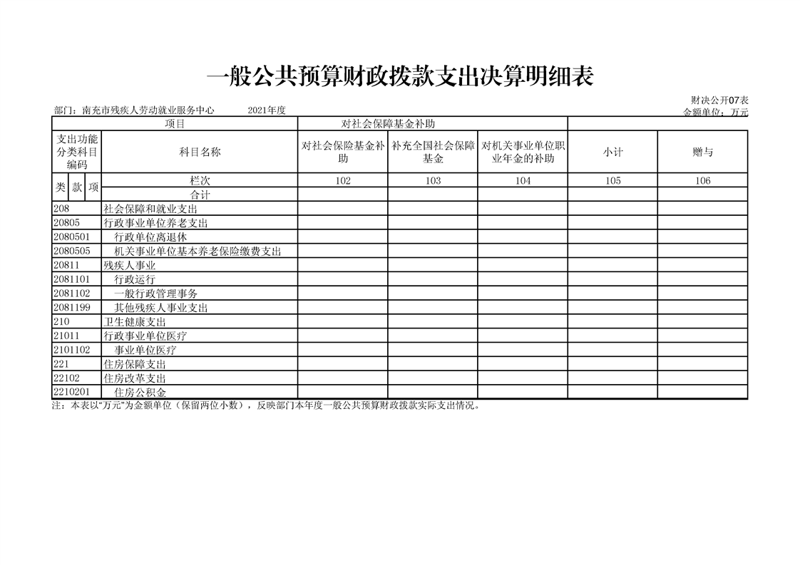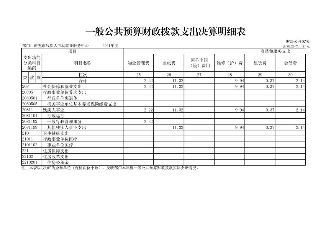 2021年度南充市殘疾人聯(lián)合會單位決算(中心)