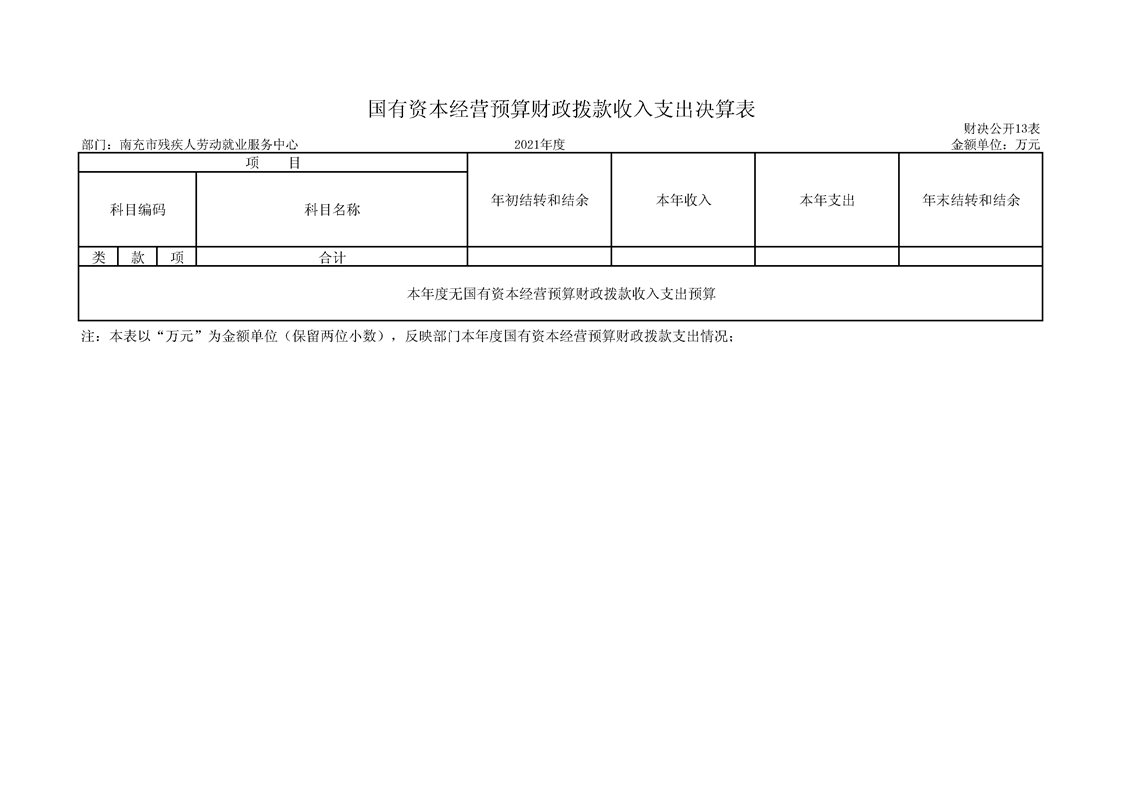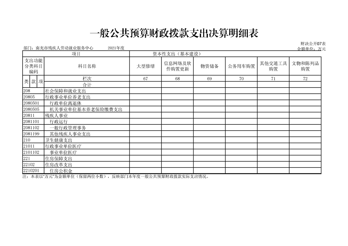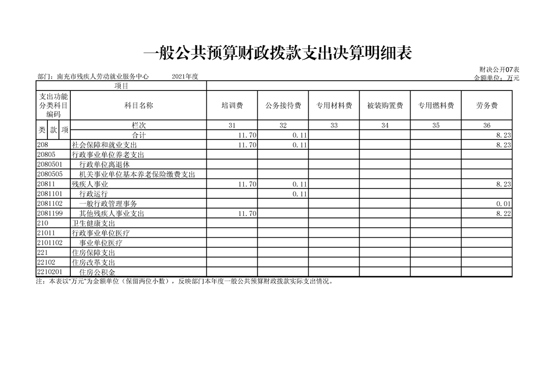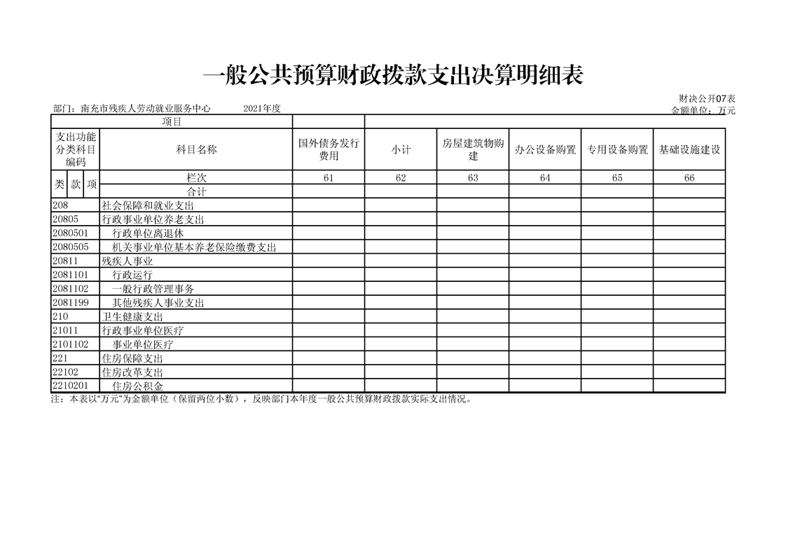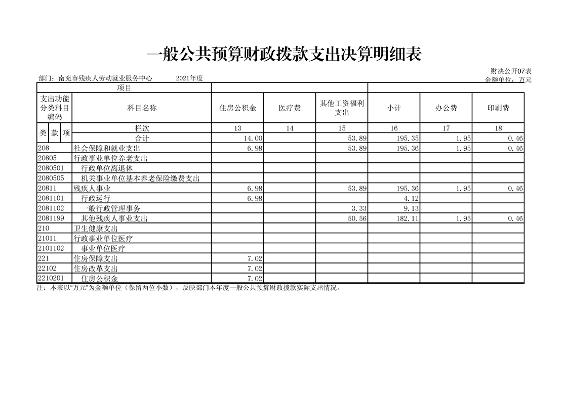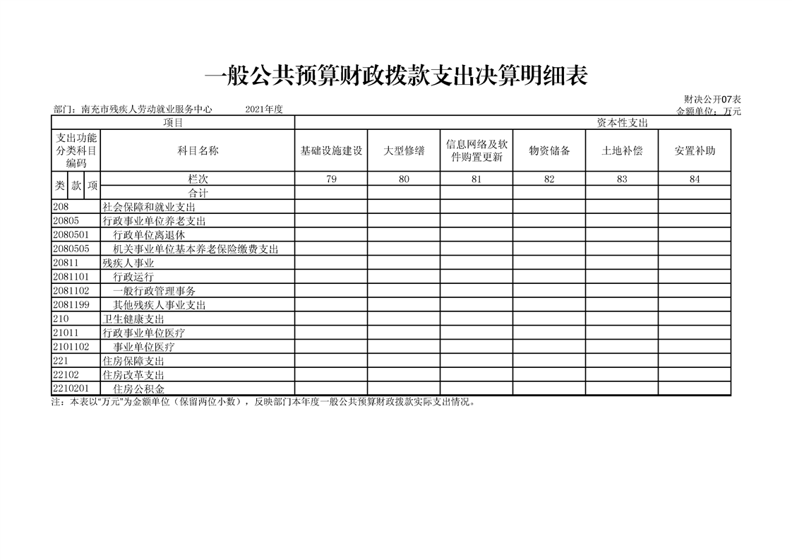 2021年度南充市殘疾人聯(lián)合會單位決算(中心)