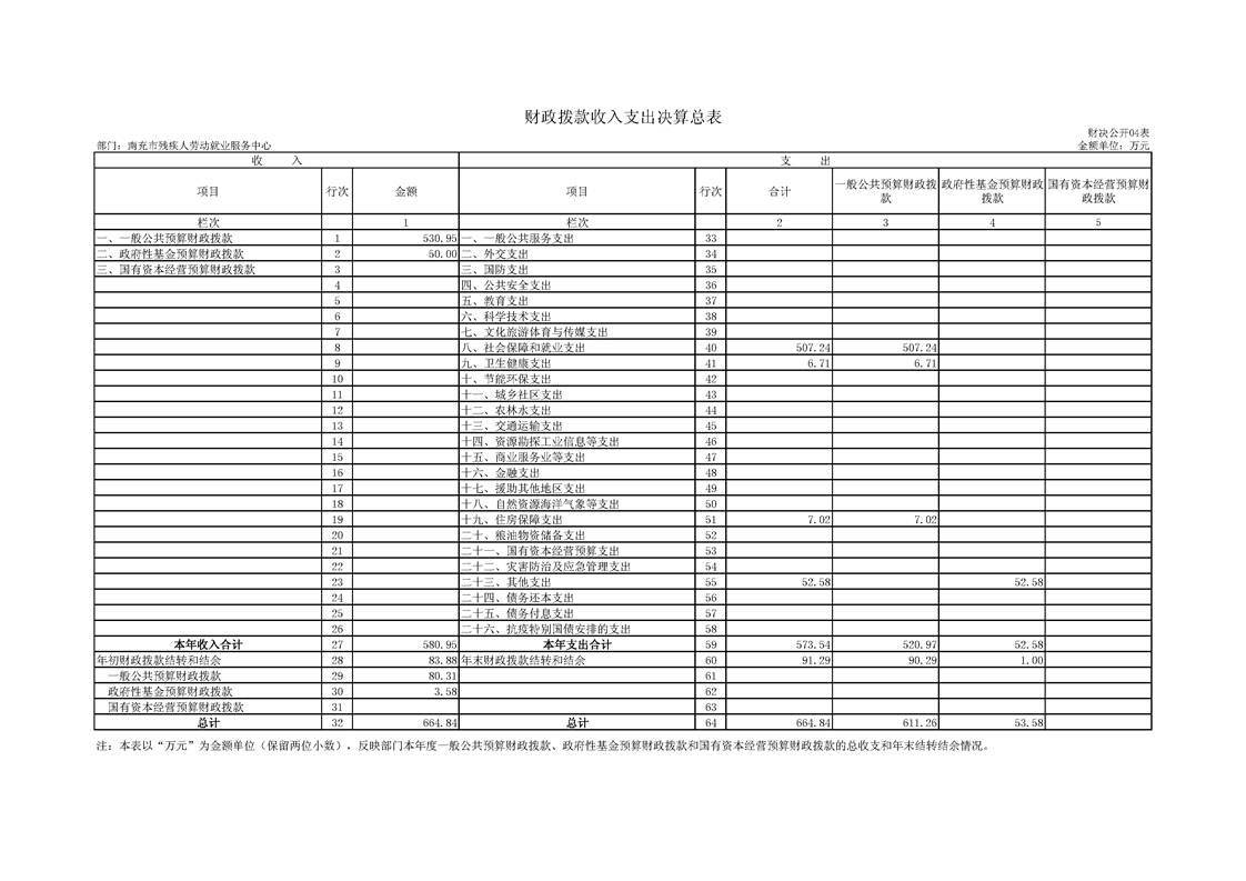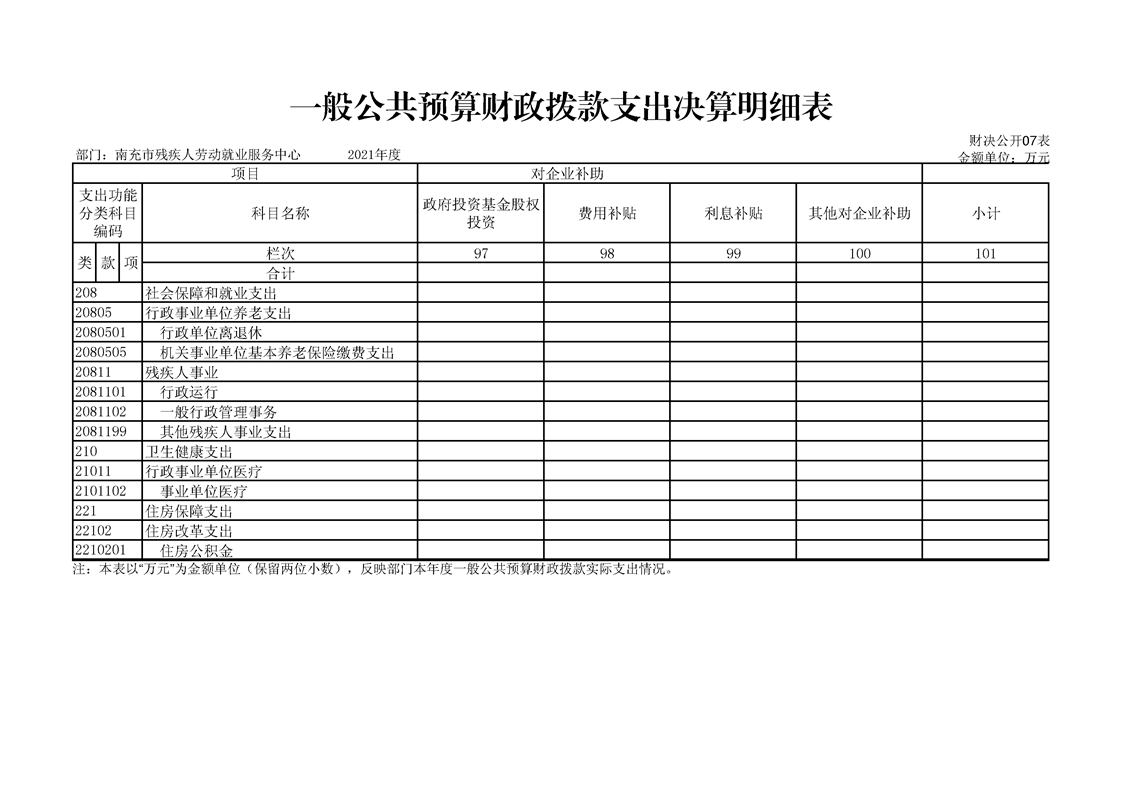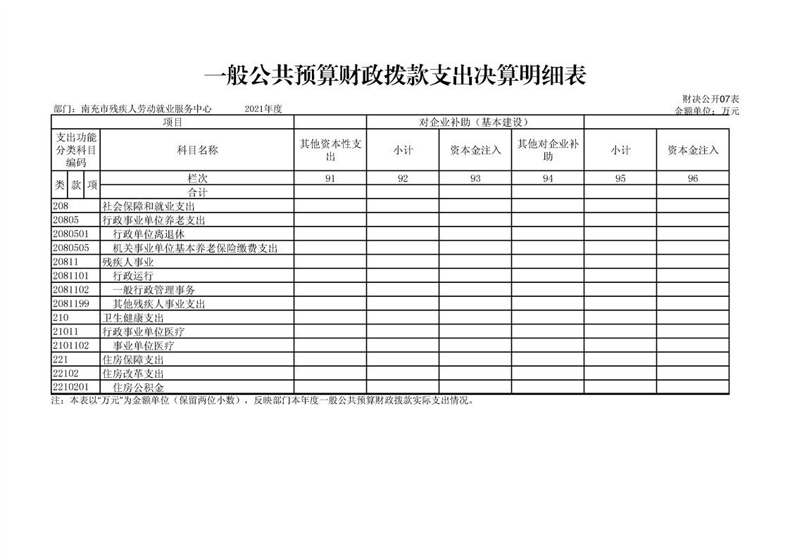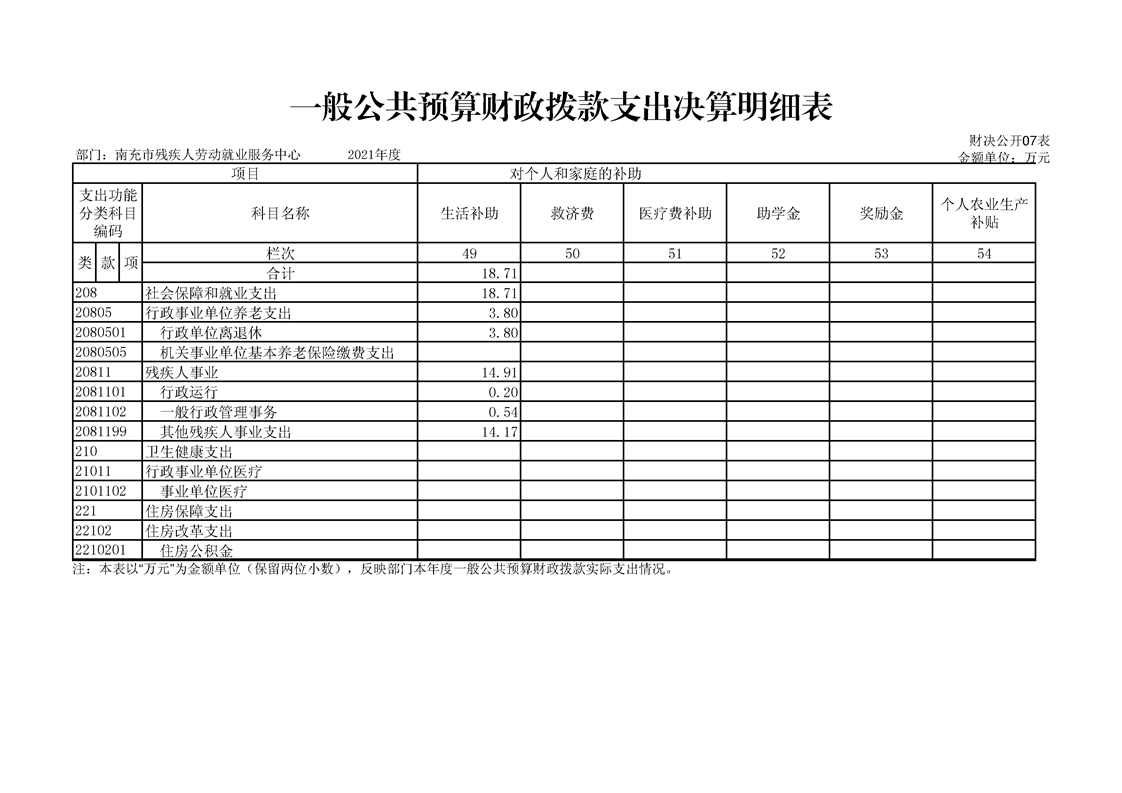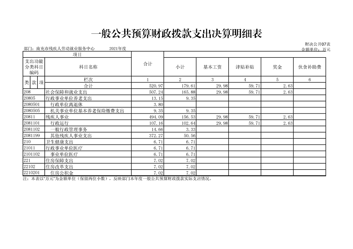2021年度南充市殘疾人聯(lián)合會單位決算(中心)