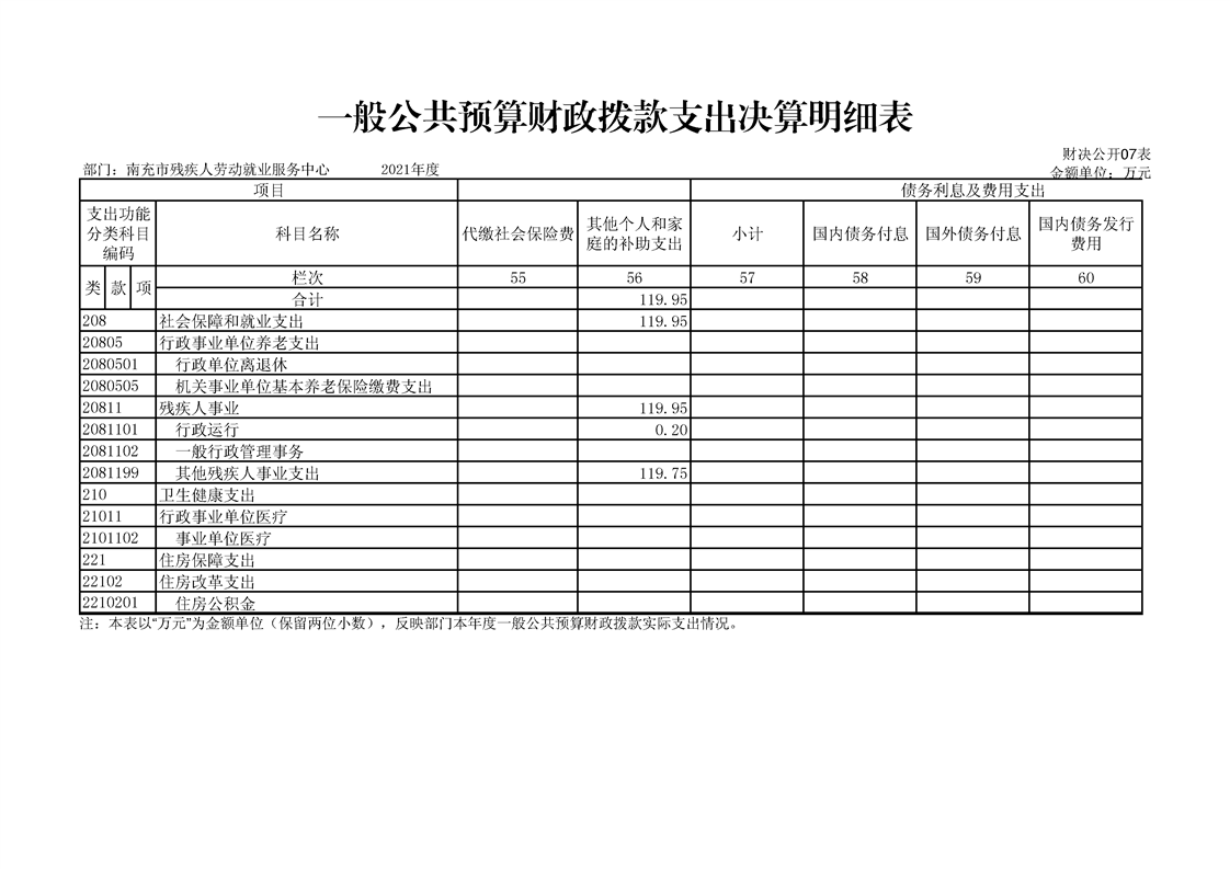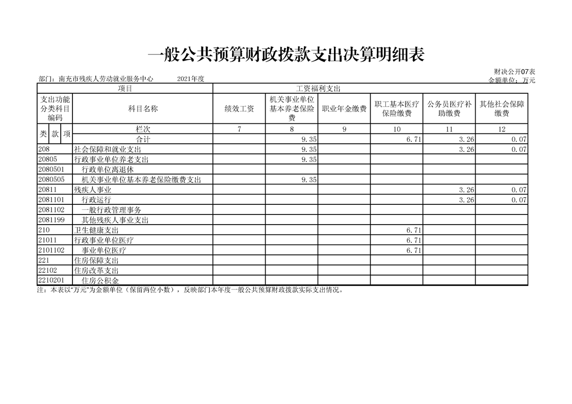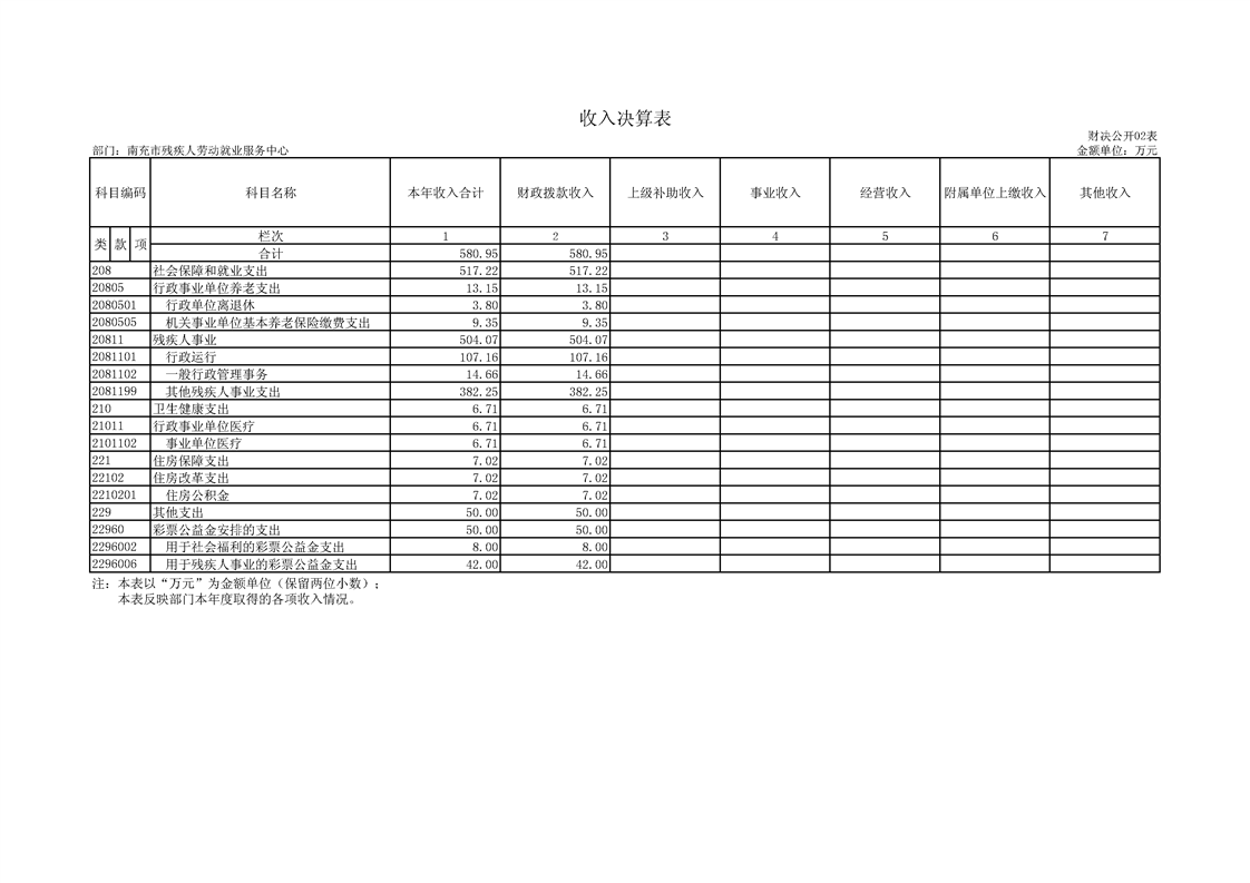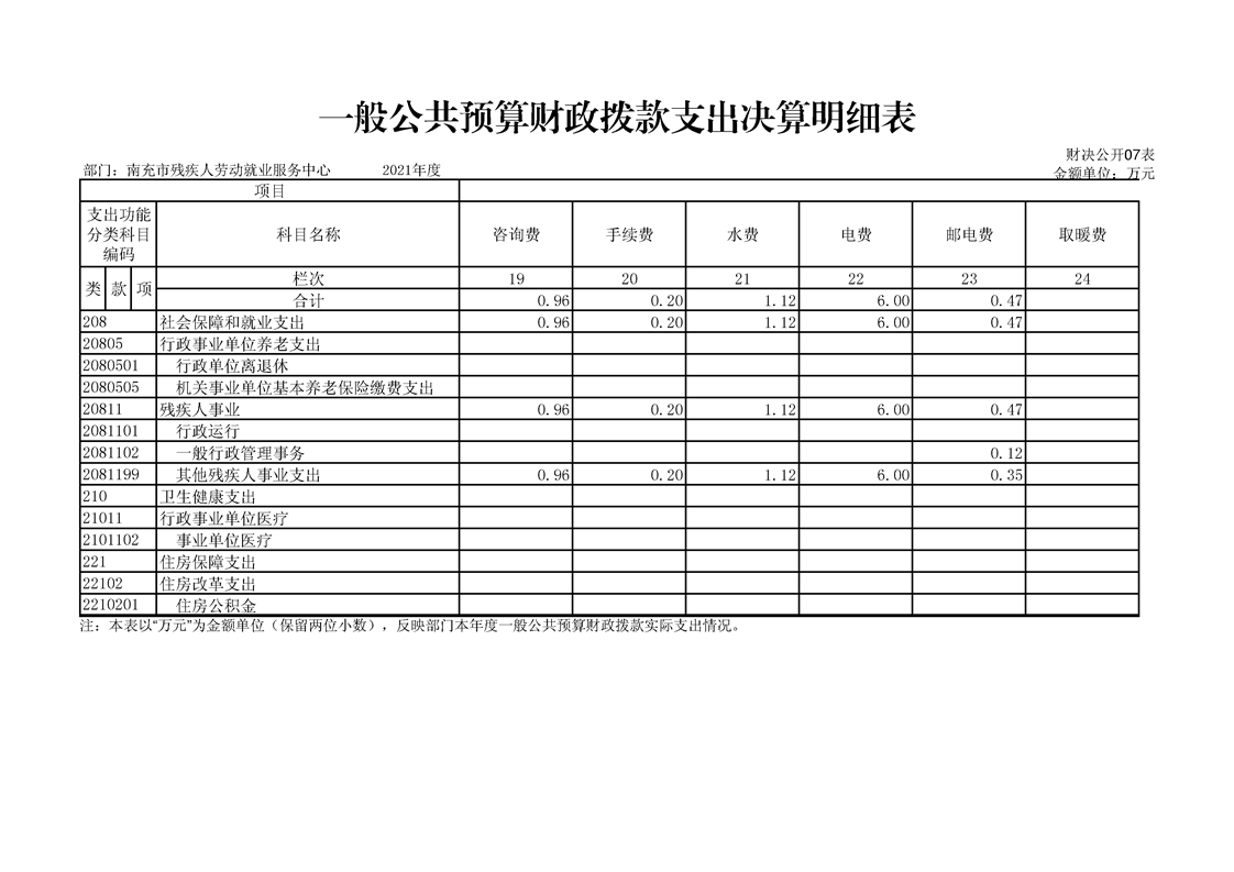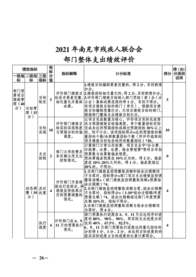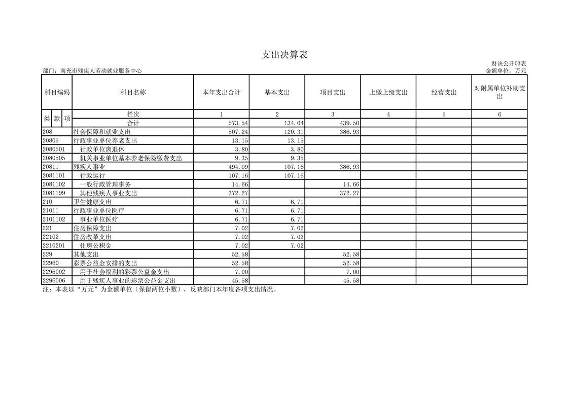 2021年度南充市殘疾人聯(lián)合會單位決算(中心)