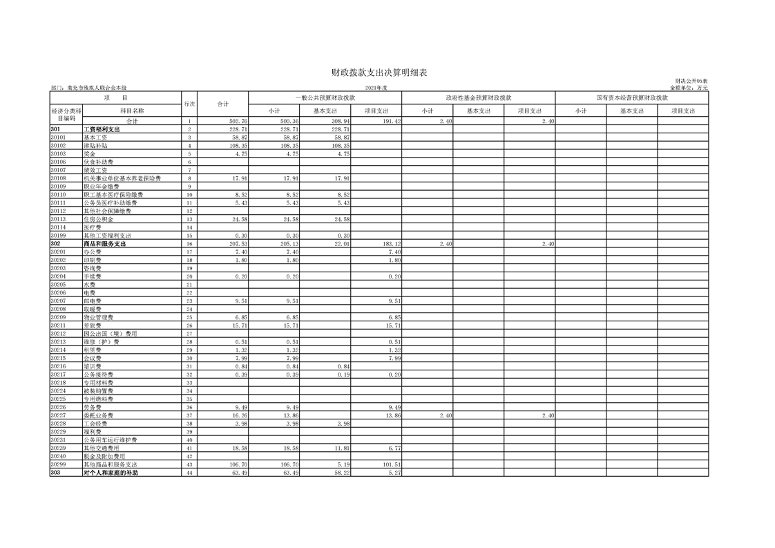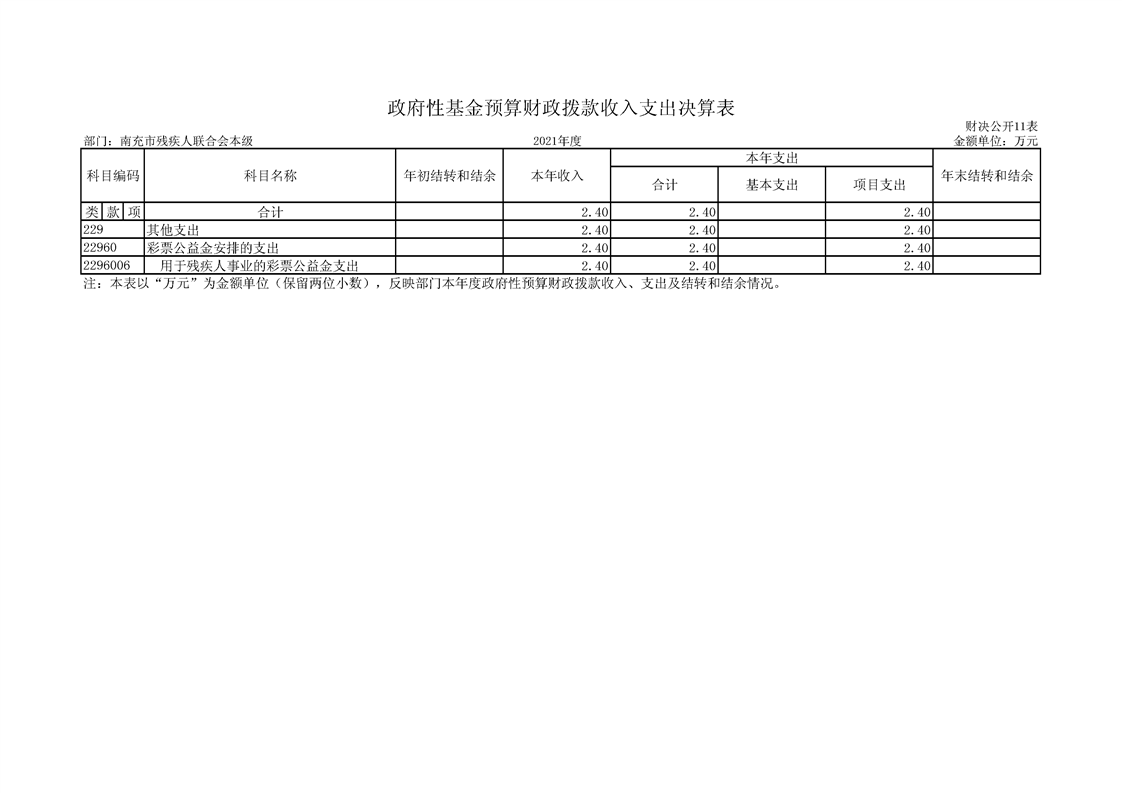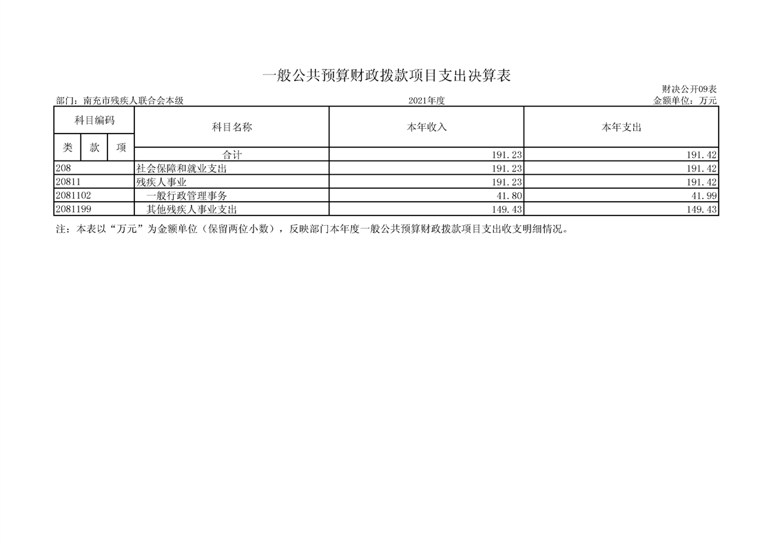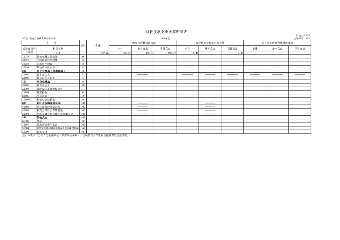 2021年度南充市殘疾人聯(lián)合會(huì)單位決算(機(jī)關(guān))
