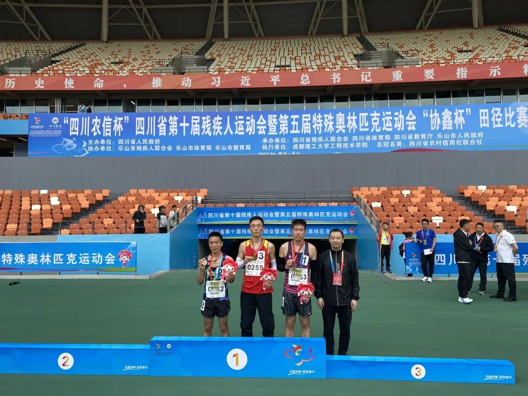 “今天能夠拿金牌,確實感覺比較意外,這是自己第一次參加大賽獲得金牌。”今年27歲的蒲彩樂在接受記者采訪時高興的說道。蒲彩樂是南充閬中人,在他6歲時,由于一次高燒,嚴(yán)重的影響了他的視力,等到高燒退后,他的視力卻越來越模糊。家人帶著他四處求醫(yī),但效果甚微,后來因為連書本上的字都看起來費勁,不得已就只能輟學(xué)在家。雖然視力影響了他的部分生活,但他并沒有因此而懊惱,反而愛上了跑步運動!拔液芟硎芘懿剑谂懿降倪^程中,能夠釋放更多的壓力。”于是,直到現(xiàn)在已經(jīng)在成都工作的蒲彩樂,也會每天抽空跑步。在上一屆的省殘?zhí)貖W會上,蒲彩樂報名參加了田徑短跑,最好的成績?yōu)殂y牌。后來,他發(fā)現(xiàn)自己的爆發(fā)力不夠,但是耐力很足。于是在集訓(xùn)中,蒲彩樂的教練有意開始讓他訓(xùn)練長跑項目,最終在這次比賽中取得了成功。