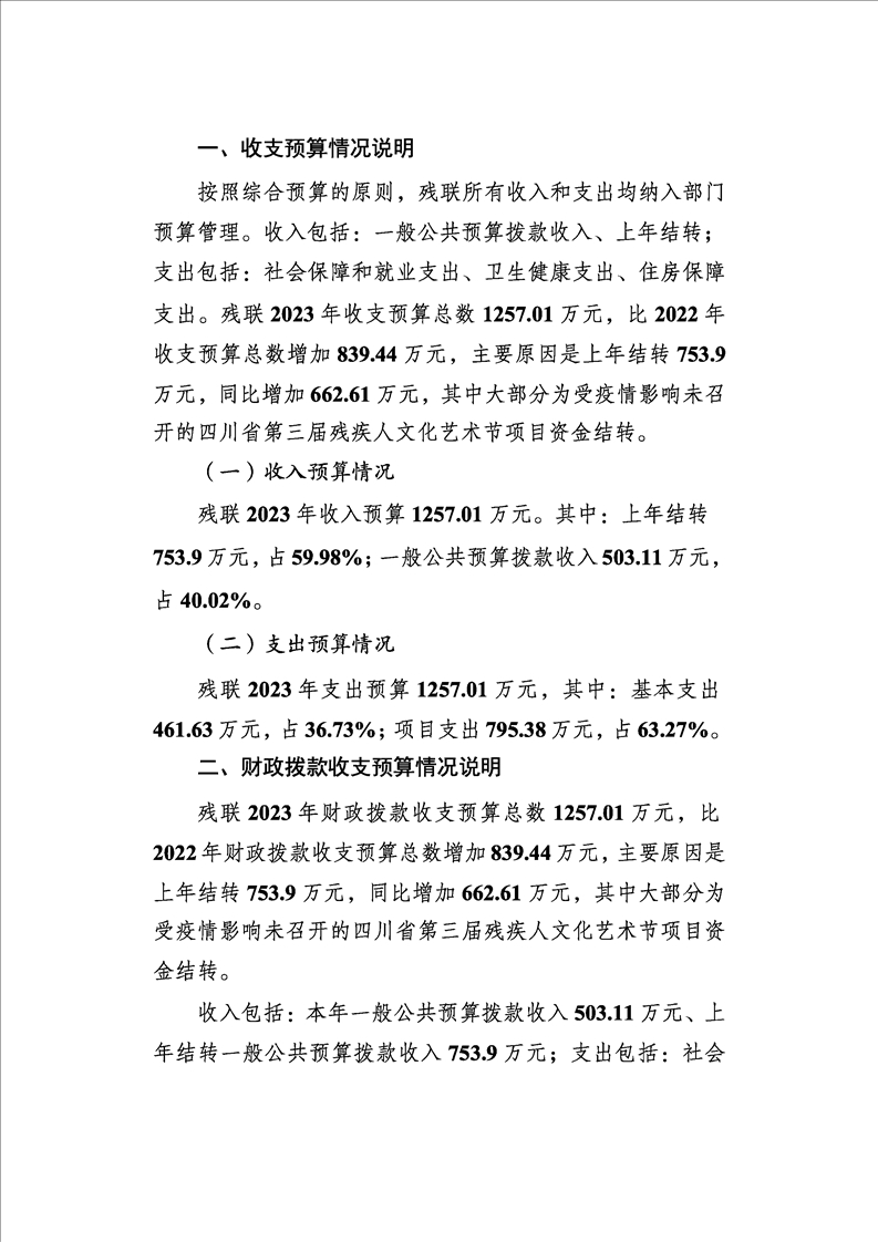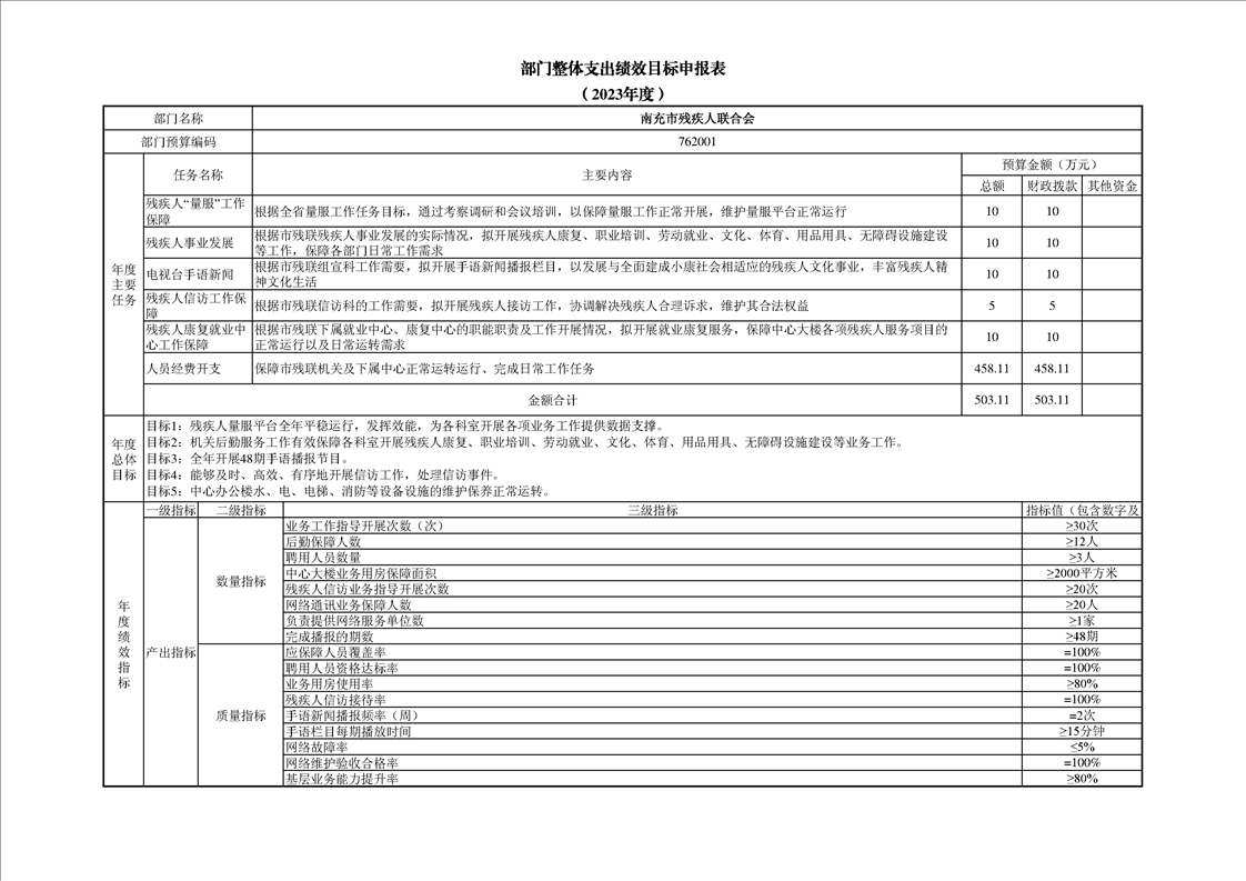 南充市殘疾人聯(lián)合會2023年部門預(yù)算公開資料