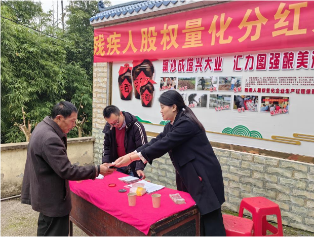 11月8日上午,營(yíng)山縣殘聯(lián)在城南街道云霧村召開(kāi)了2023年度殘疾人扶貧資金股權(quán)量化分紅大會(huì)。營(yíng)山縣云霧山泉酒廠(chǎng)向入股的23名貧困殘疾人發(fā)放了分紅資金。讓參加分紅的殘疾人真切地感受到了黨和政府對(duì)于殘疾人群體的關(guān)心、關(guān)愛(ài)和幫助。