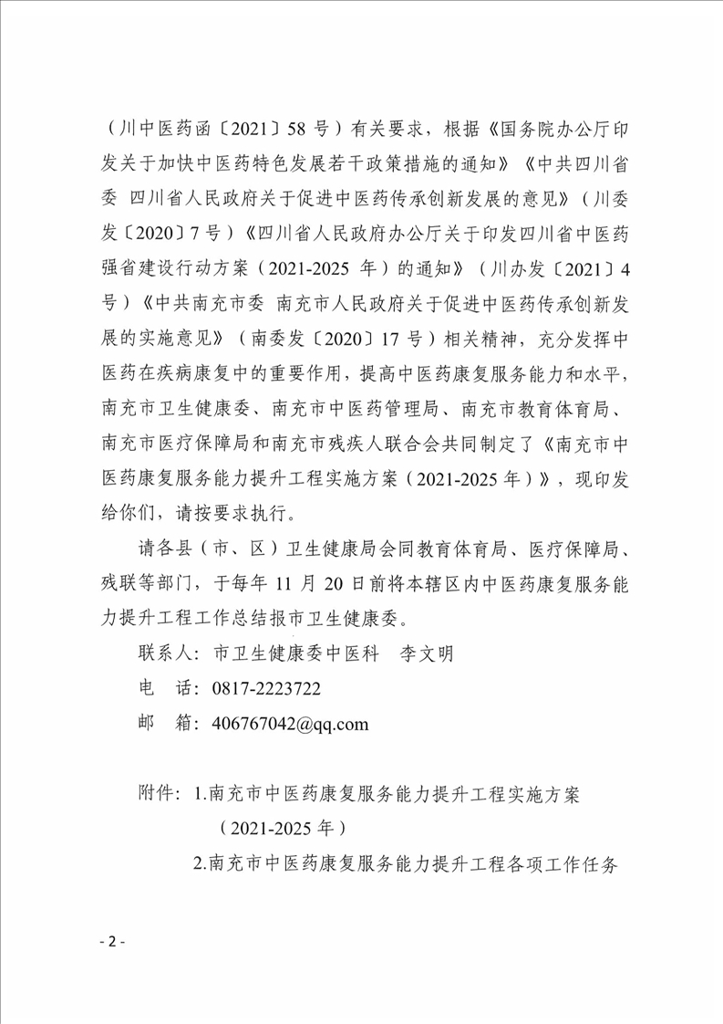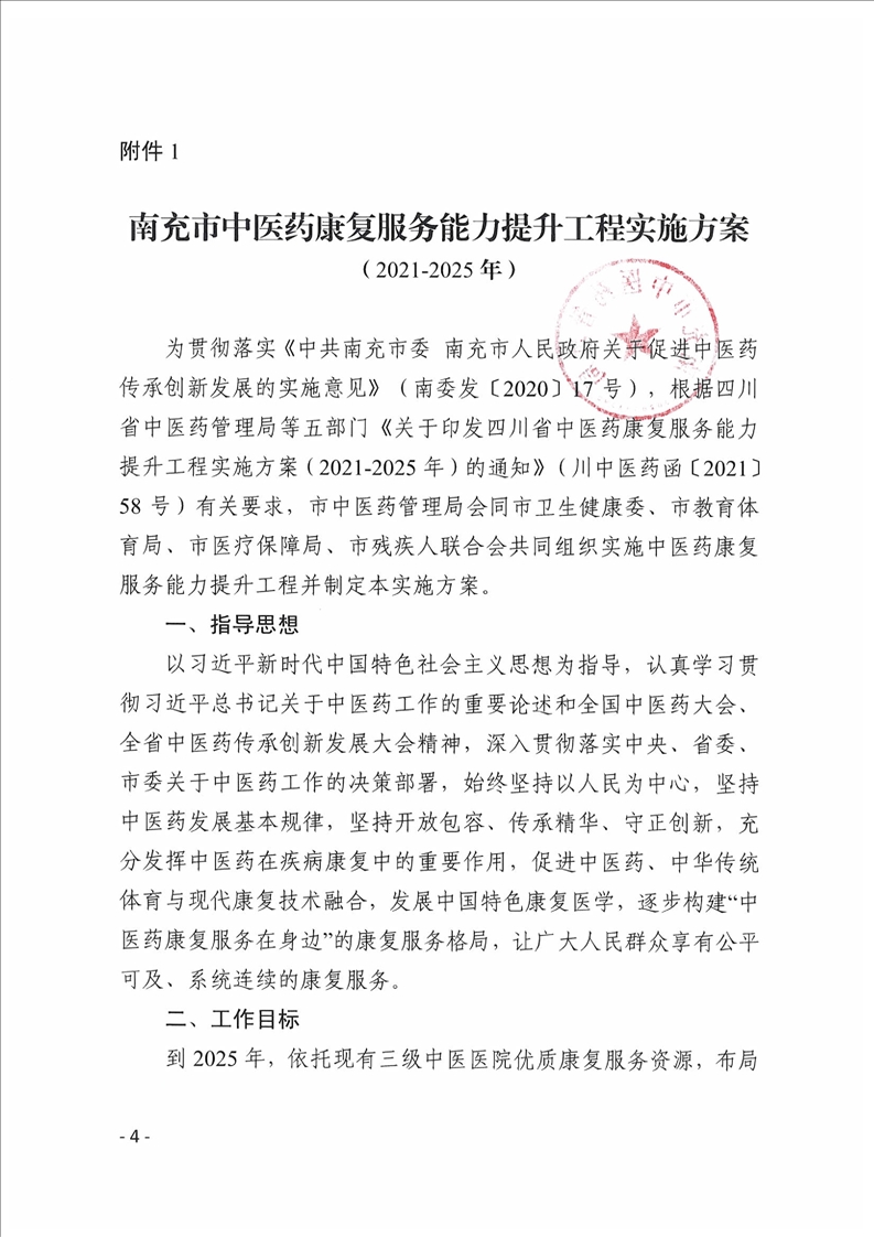 關(guān)于印發(fā)《南充市中醫(yī)藥康復服務(wù)能力提升工程實施方案(2021-2025年)》的通知[現(xiàn)行有效]