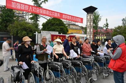閬中市殘聯(lián)現(xiàn)場向一批重度肢體殘疾人發(fā)放了輪椅。葉明松勉勵廣大殘疾人自立自強,樂觀奮進,感謝殘疾人家屬的辛勤付出,呼吁社會各界廣泛傳遞“平等、融合、共享”的新時代殘疾人事業(yè)價值理念,關(guān)心關(guān)愛殘疾人兄弟姐妹,共創(chuàng)共享幸福美好生活。