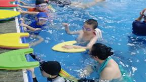 “嘩、嘩、嘩......”西山運動場游泳館里開出了朵朵美麗的浪花,孩子們在泳池中你追我趕、暢快游玩。