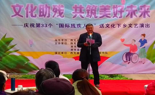 為深入學(xué)習(xí)貫徹習(xí)近平文化思想,增強(qiáng)廣大殘疾人文化自信和愛國主義情感,11月24日,第33個“國際殘疾人日”到來之際,西充縣殘疾人聯(lián)合會、南充市肢殘人協(xié)會、西充縣肢殘人協(xié)會在西充縣占山鄉(xiāng)羅堰坎村開展“文化助殘 共筑美好未來”送文化下鄉(xiāng)演出活動。
