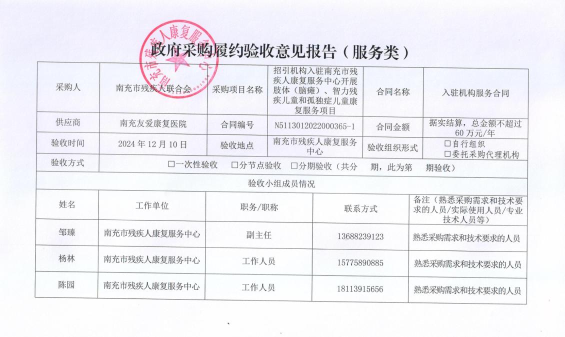 殘疾兒童康復(fù)訓(xùn)練服務(wù)項(xiàng)目履約驗(yàn)收報(bào)告