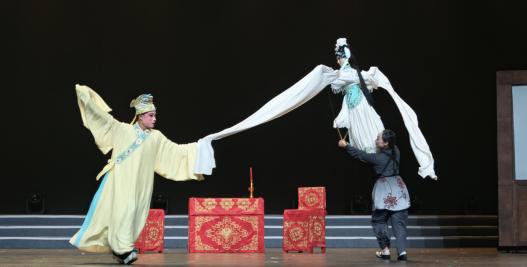 作為川劇折子戲創(chuàng)新之作,《放裴》巧妙融合川北大木偶、川北皮影、川劇變臉等四川獨(dú)有非遺元素,在傳承中煥發(fā)新彩。演出中,聽障殘疾人擔(dān)綱主角,以精準(zhǔn)的肢體語(yǔ)言傳遞角色情感;肢體殘疾人通過精湛口技模擬鑼鼓聲響,為劇情鋪陳節(jié)奏;專業(yè)演員則在戲劇唱腔與大木偶表演環(huán)節(jié)提供助演支持。這種“殘健融合”的演繹模式,既展現(xiàn)了殘疾人演員的藝術(shù)潛能,又實(shí)現(xiàn)了傳統(tǒng)戲曲與現(xiàn)代舞臺(tái)美學(xué)的完美碰撞。