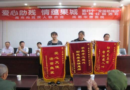據(jù)了解,助殘日期間,三區(qū)六縣(市)的相關(guān)領(lǐng)導(dǎo)紛紛走訪慰問當(dāng)?shù)刎毨埣踩,為他們送去慰問金及慰問物資。 嘉陵區(qū)區(qū)委副書記李康、區(qū)政府副區(qū)長李強(qiáng)在該區(qū)殘聯(lián)理事長蒲祥興的陪同下深入火花社區(qū)、大觀鄉(xiāng)等地慰問殘疾人,為殘疾人贈送現(xiàn)金及物資共計(jì)98100元。儀隴縣政府副縣長楊洪江在縣殘聯(lián)理事長吳顯貴的陪同下前往新政鎮(zhèn)看望慰問貧困殘疾人,并送上慰問金。繼后,吳理事長到雙勝鎮(zhèn)陽海林的甲魚養(yǎng)殖基地,詳細(xì)詢問了他的身體狀況和養(yǎng)殖情況。高坪區(qū)殘聯(lián)理事長李澤文帶領(lǐng)工作人員到該區(qū)特教校,看望學(xué)校師生,為該校捐贈1萬元,殘聯(lián)干部還親切的與孩子們一起玩耍。隨后,他們還給該區(qū)新開的3所盲人按摩院送去10件按摩器械和40件用品用具,并看望那里的盲人按摩員。順慶駐轄區(qū)部隊(duì)、西華師大、社區(qū)的400余名黨員志愿者,還與貧困殘疾人家庭結(jié)成幫扶對子。 為了集中宣傳“全國助殘日”,閬中市殘聯(lián)舉行了輪椅捐贈儀式,為120名肢體殘疾人發(fā)放了嶄新的輪椅,該市殘聯(lián)還在保寧廣場舉行了殘疾人機(jī)動輪椅車燃油補(bǔ)貼發(fā)放儀式,100名車主分別領(lǐng)到了兩年補(bǔ)貼金400元。在閬中市殘疾人技能培訓(xùn)中心里, 23名殘疾人參加了縫紉、按摩、電腦技術(shù)培訓(xùn),為殘疾人就業(yè)開辟了通道。 在西充縣紀(jì)信廣場舉辦的電影晚會上,《網(wǎng)絡(luò)媽媽》等反映殘疾人自強(qiáng)不息的影片以及在該縣有線電視臺播放的反映種養(yǎng)殖大戶何態(tài)聯(lián)(肢殘)自強(qiáng)自立的專題片吸引了許多市民關(guān)注殘疾人群體。 營山縣殘聯(lián)還組織近300名白內(nèi)障患者到南充麥格眼科醫(yī)院接受免費(fèi)復(fù)明手術(shù),對600余名眼疾患者進(jìn)行了初篩檢查,為100名殘疾人發(fā)放了輪椅。 在市殘聯(lián)和成都華康醫(yī)院聯(lián)合舉辦的“愛心助殘、情蘊(yùn)果城”助殘公益活動上,來自全市的50余名腦癱患兒及其家長參加了此次活動。小兒腦癱專家傅師亭教授就如何開展腦癱家庭康復(fù)進(jìn)行了講解和演示,并和市殘聯(lián)康復(fù)中心劉主任一同向腦癱患兒發(fā)放了毛絨玩具;顒又,幾位腦癱患兒家長為答謝市殘聯(lián)和華康醫(yī)院對小孩的康復(fù)治療,特意趕來贈送錦旗,并拉住工作人員的手,不停地說著“謝謝”。