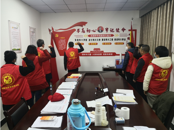 首先,開展“防疫戰(zhàn)場黨旗紅”黨員宣誓活動。閬中市殘聯(lián)黨組成員、機關(guān)支部書記、副理事長王冰帶領(lǐng)機關(guān)黨員在黨旗下宣誓,用儀式感增強黨員干部責(zé)任感,引導(dǎo)全體黨員干部站出來、沖出去。